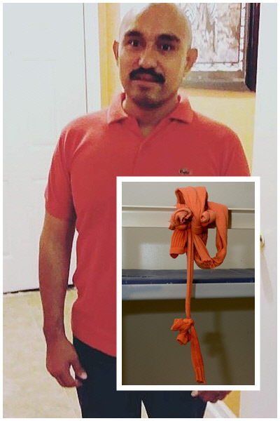 지난해 7월 10일 밤 미국 조지아주 스튜어트구치소 독방에서 본국 송환을 기다리던 중 자살을 한 40세 정신질환자 로메로와 그가 양말로 만든 올가미(작은 사진). <인터셉트> 웹사이트 캡처